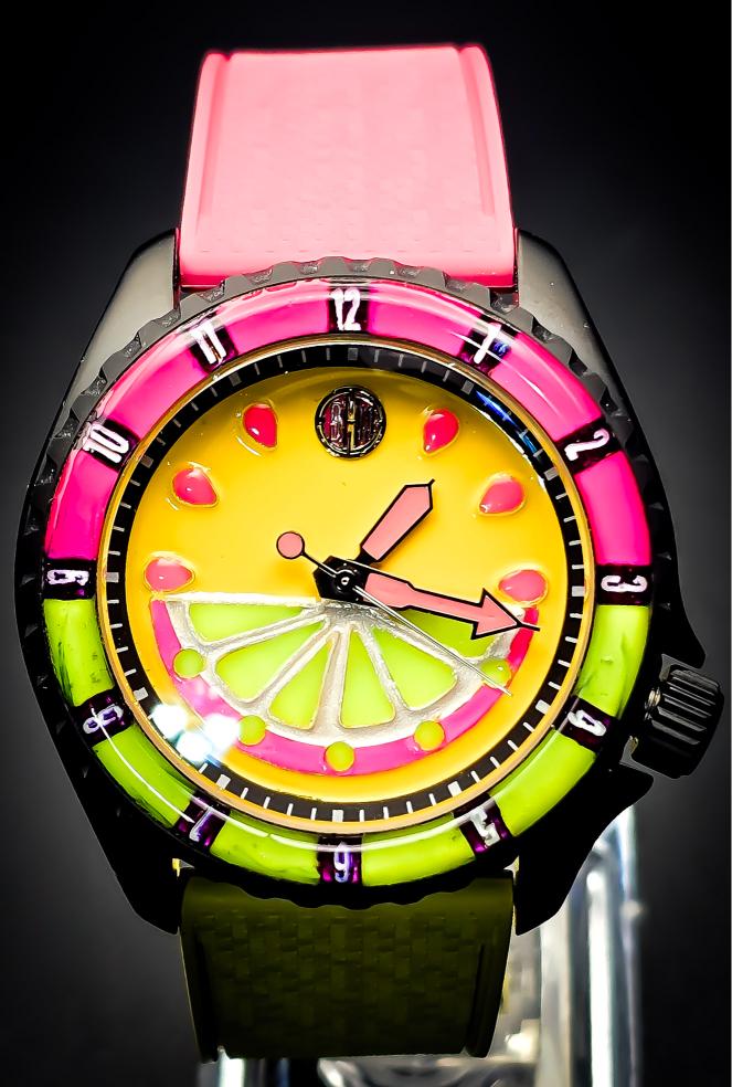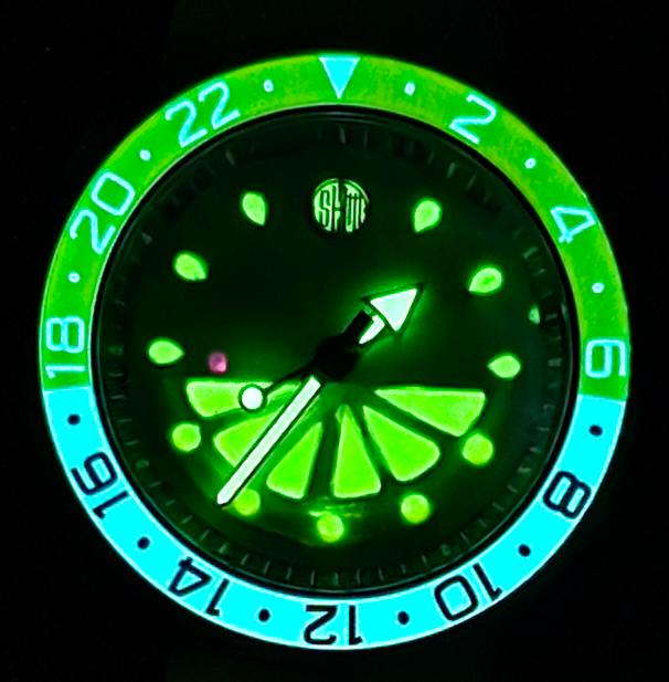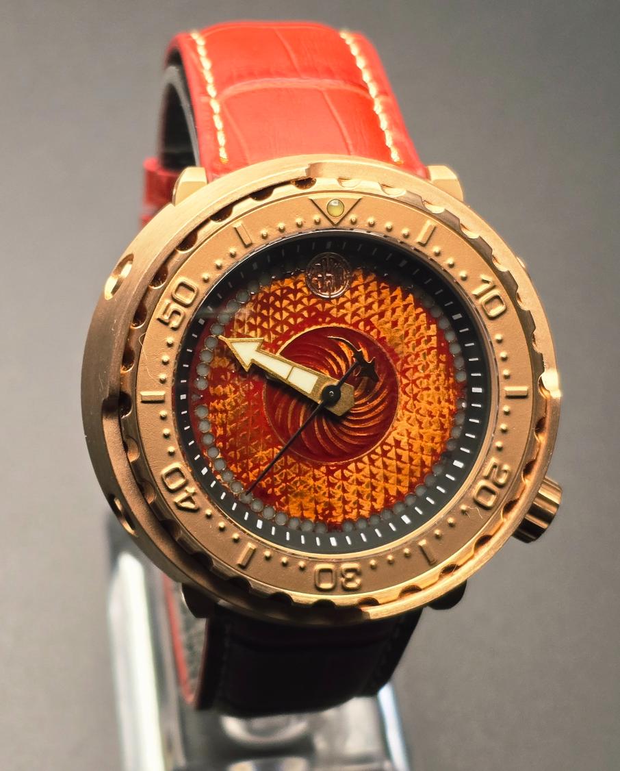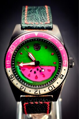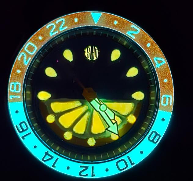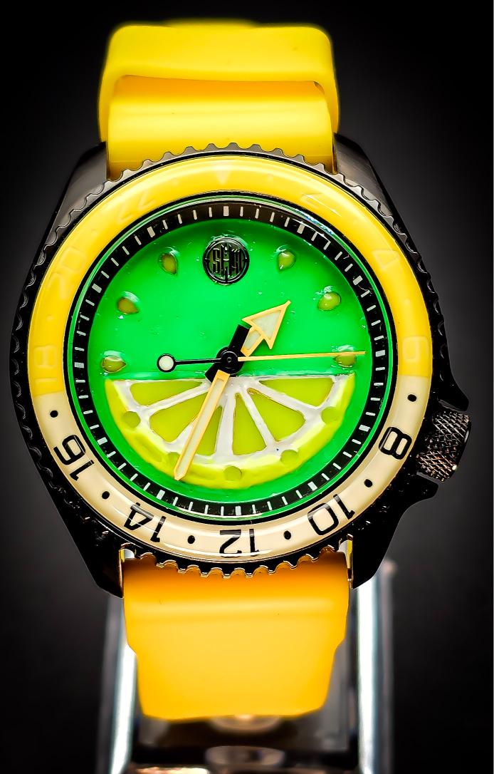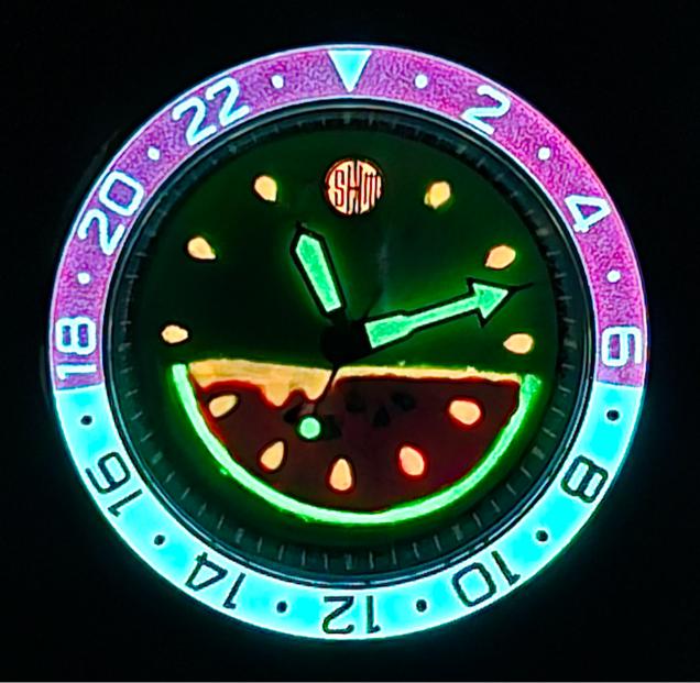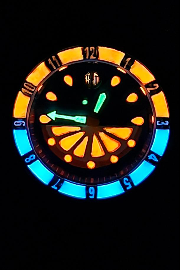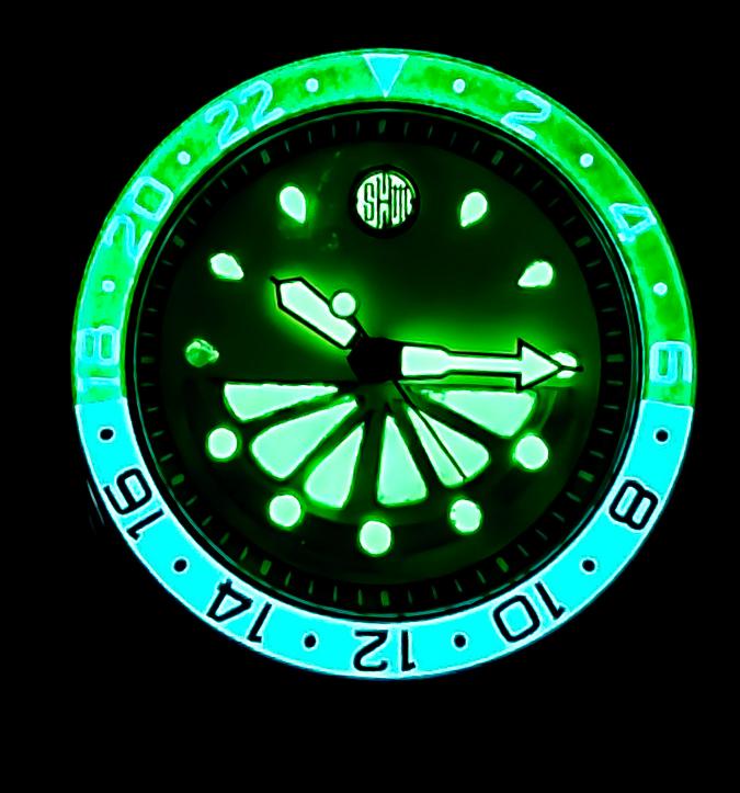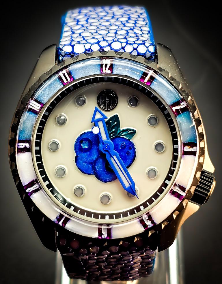 Each dial and custom insert is hand painted and lumed, giving every watch a one-of-a-kind look