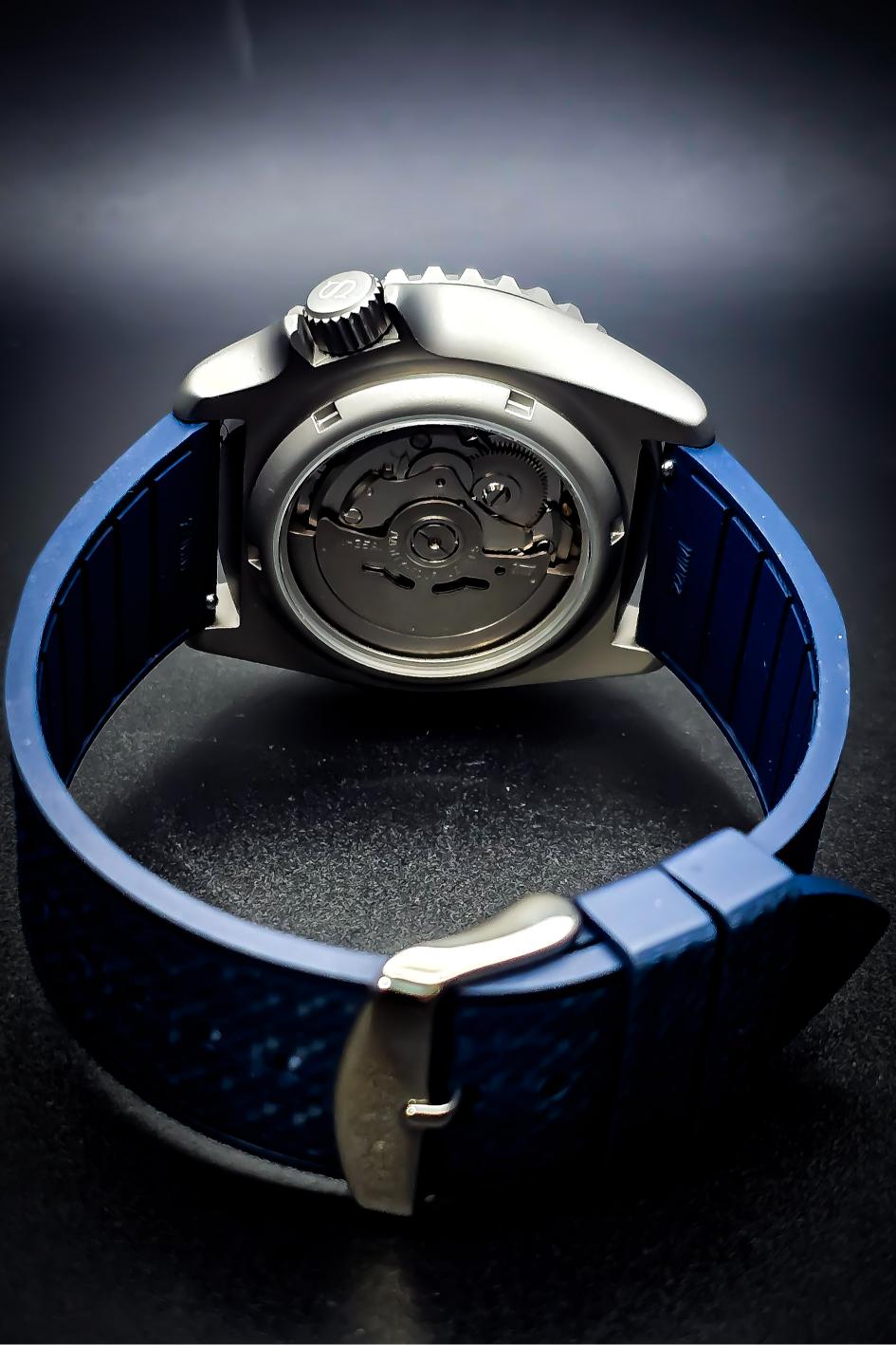At its core ticks the Seiko NH. It's a movement chosen for its reliability and modding versatility. It’s the quiet heartbeat housed in a matte stainless steel case (available in black or silver), protected by a thick sapphire crystal and exhibition caseback that invites you to peek behind the curtain.